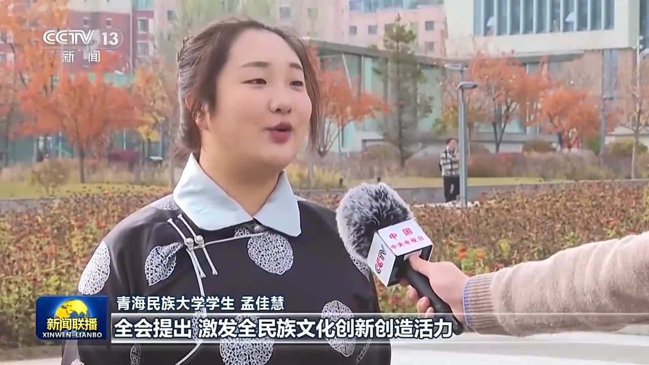 青海民族大学学生 孟佳慧:全会提出,激发全民族文化创新创造活力,繁荣发展社会主义文化。作为新时代的大学生,我们深受鼓舞,立志成为社会主义文化的坚定传承者和积极创造者,用我们的实际行动,为中华民族现代文明添砖加瓦。