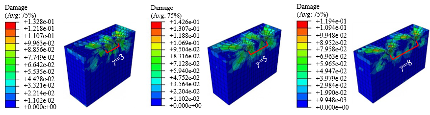 不同轴向蚀坑坑间系数下损伤分布示意图