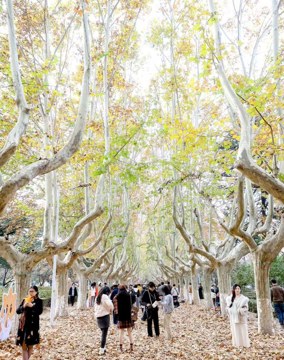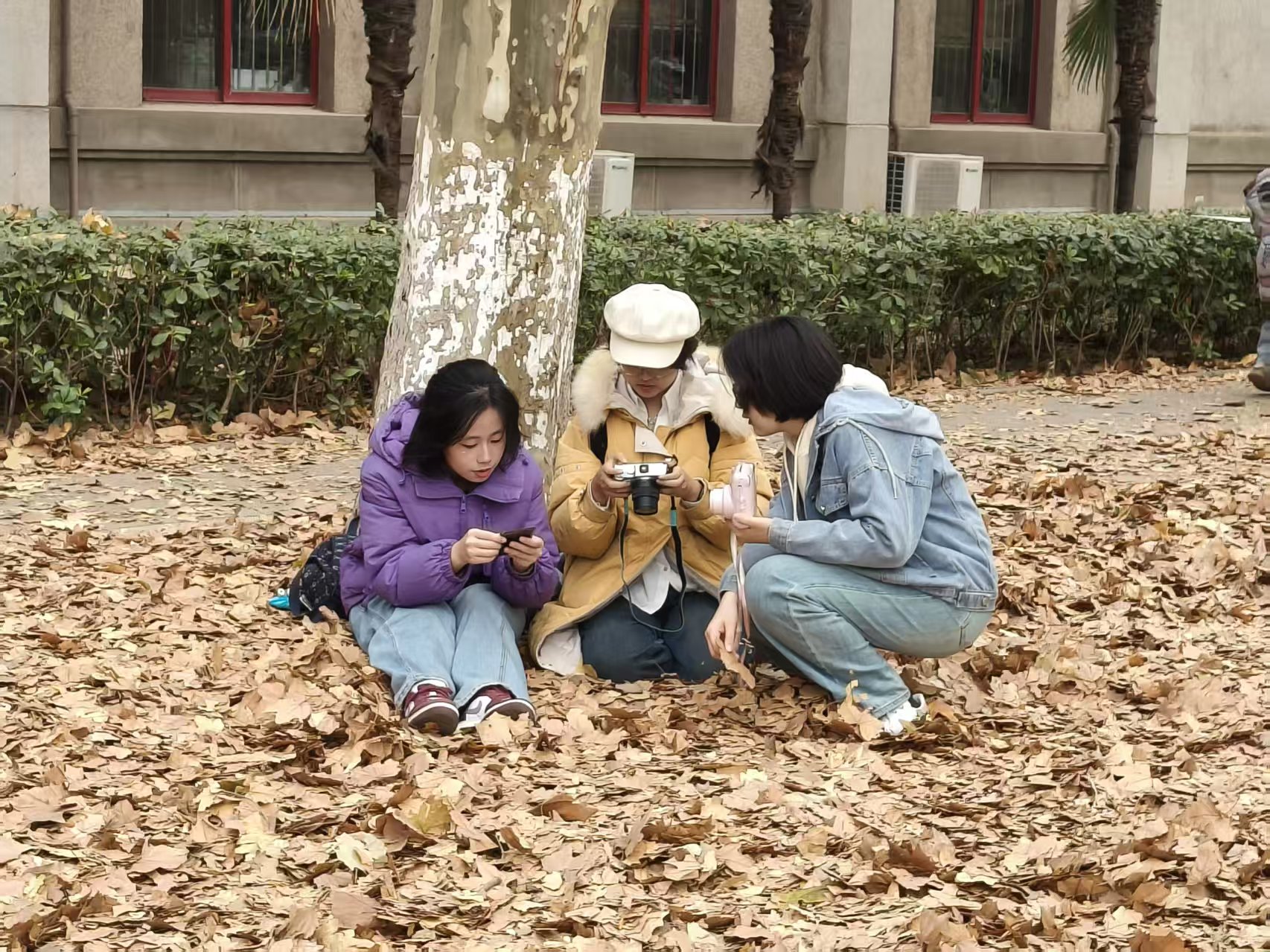西安交通大学兴庆校区的梧桐大道上,地面铺就一层厚厚的金黄落叶,宛若天然“金色地毯”,吸引校内师生与校外预约访客纷至沓来。其中,不少家长特意带着孩子走进校园,举着手机,记录孩子与落叶互动的童真瞬间:学生们三五成群,有的抬手扬起落叶,任金黄碎片在空中飞舞,抢抓“落叶雨”瞬间的灵动;有的精心摆出托举落叶、依偎树干等造型,让秋日光影与青春笑容同框;更有创意十足的同学,用梧桐叶编织成小巧的“落叶帽”戴在头上,为照片增添几分俏皮。
