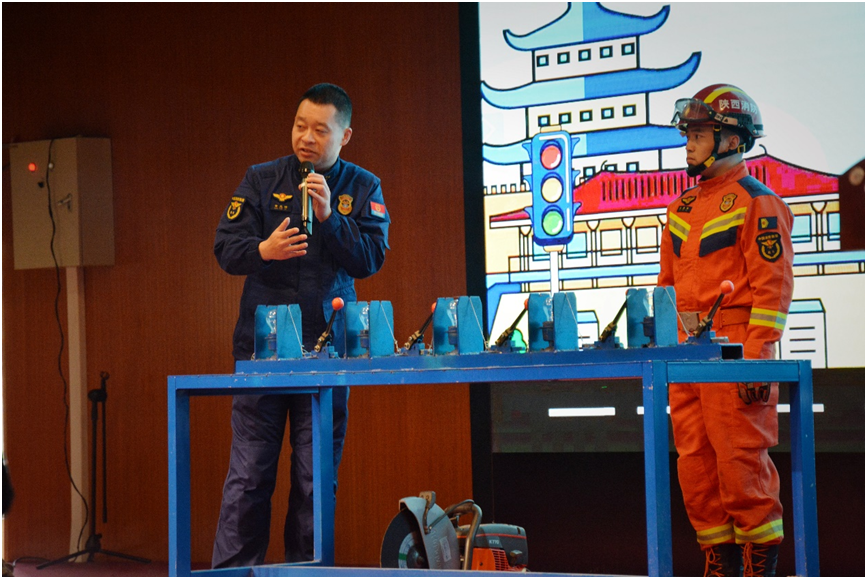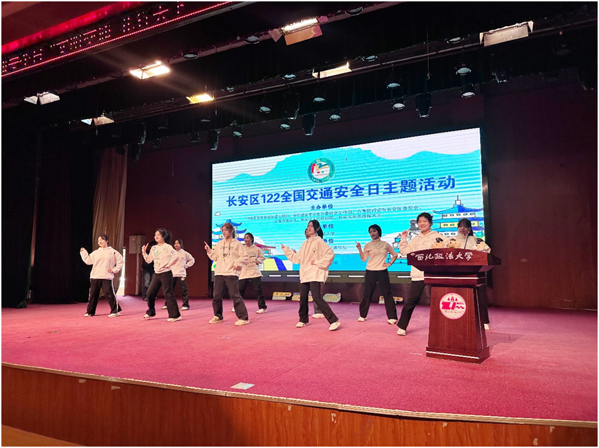 交管长安大队民辅警率先登场,带来歌曲《交警修炼手册》演唱与交通指挥手势操表演,用鲜活生动的演绎展现交警坚守岗位、护航平安的责任担当,赢得现场阵阵掌声。随后,交管长安大队副大队长杨军登台致辞,深刻阐述交通安全对社会和谐、群众幸福的重要意义,结合辖区交通实际明确文明出行要求,呼吁全体参与者主动践行交通法规,共同守护道路安全。西北政法大学党委副书记郭武军表示学校也将以此次活动为新起点,持续深化与各部门的协作联动,不断提升校园交通安全管理精细化水平,努力建设成为文明交通的示范之地、安全和谐的育人摇篮。接着,消防救援技能展示、交通法规专题授课、青春韵律操表演等环节依次开展,丰富多元的内容既传递了安全知识,更点燃了现场参与热情,最后的交通安全宣教与互动问答环节,交管长安大队民警细致科普出行注意事项,通过问答互动加深大家对交通法规的理解,切实强化守法出行意识。