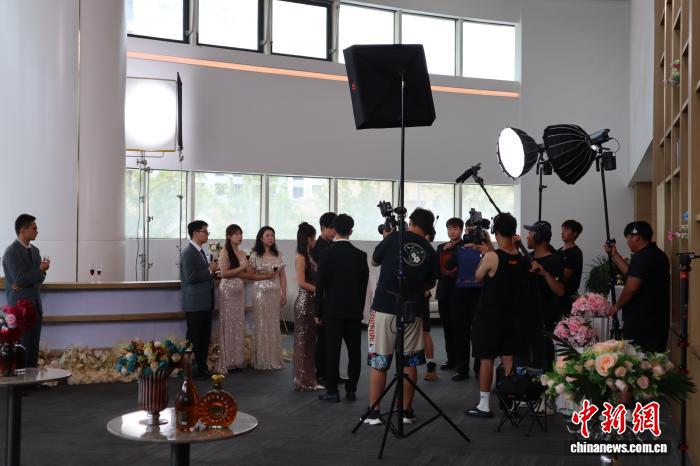 图为陕西西安一微短剧剧组正在拍摄。