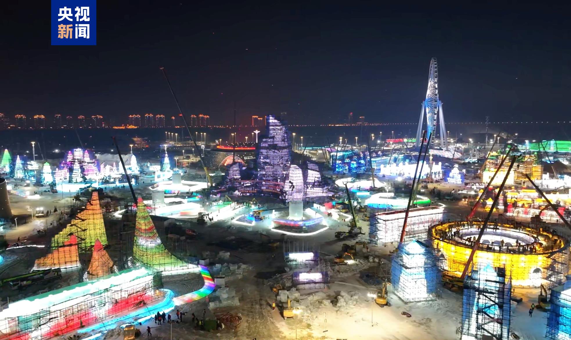 “进度条”刷新!哈尔滨冰雪大世界主塔封顶