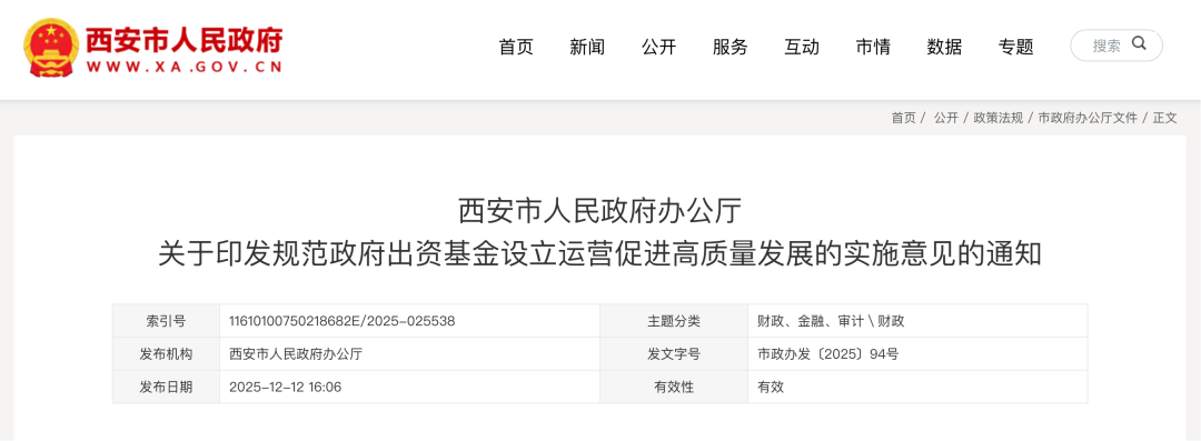 西安市关于规范政府出资基金设立运营促进高质量发展的实施意见