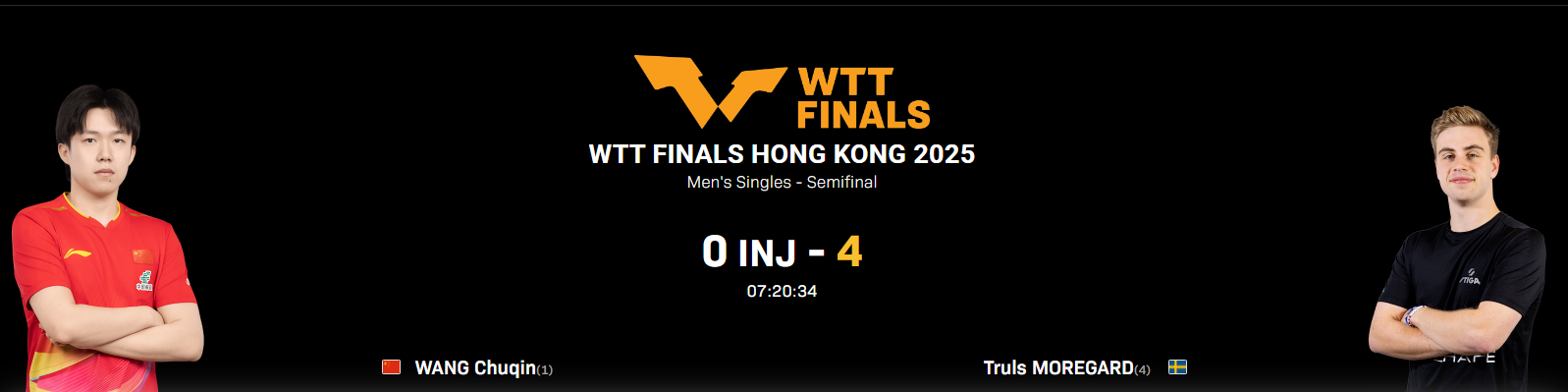 WTT香港总决赛男单半决赛:王楚钦因伤退赛 央视体育 2025-12-14 15:27 北京时间12月14日,WTT香港总决赛男单半决赛,王楚钦对阵特鲁斯·莫雷加德。赛前王楚钦宣布因伤退赛,两人登场后拥抱致意,男单决赛将在莫雷加德与张本智和之间展开。 编辑:霍晨歆