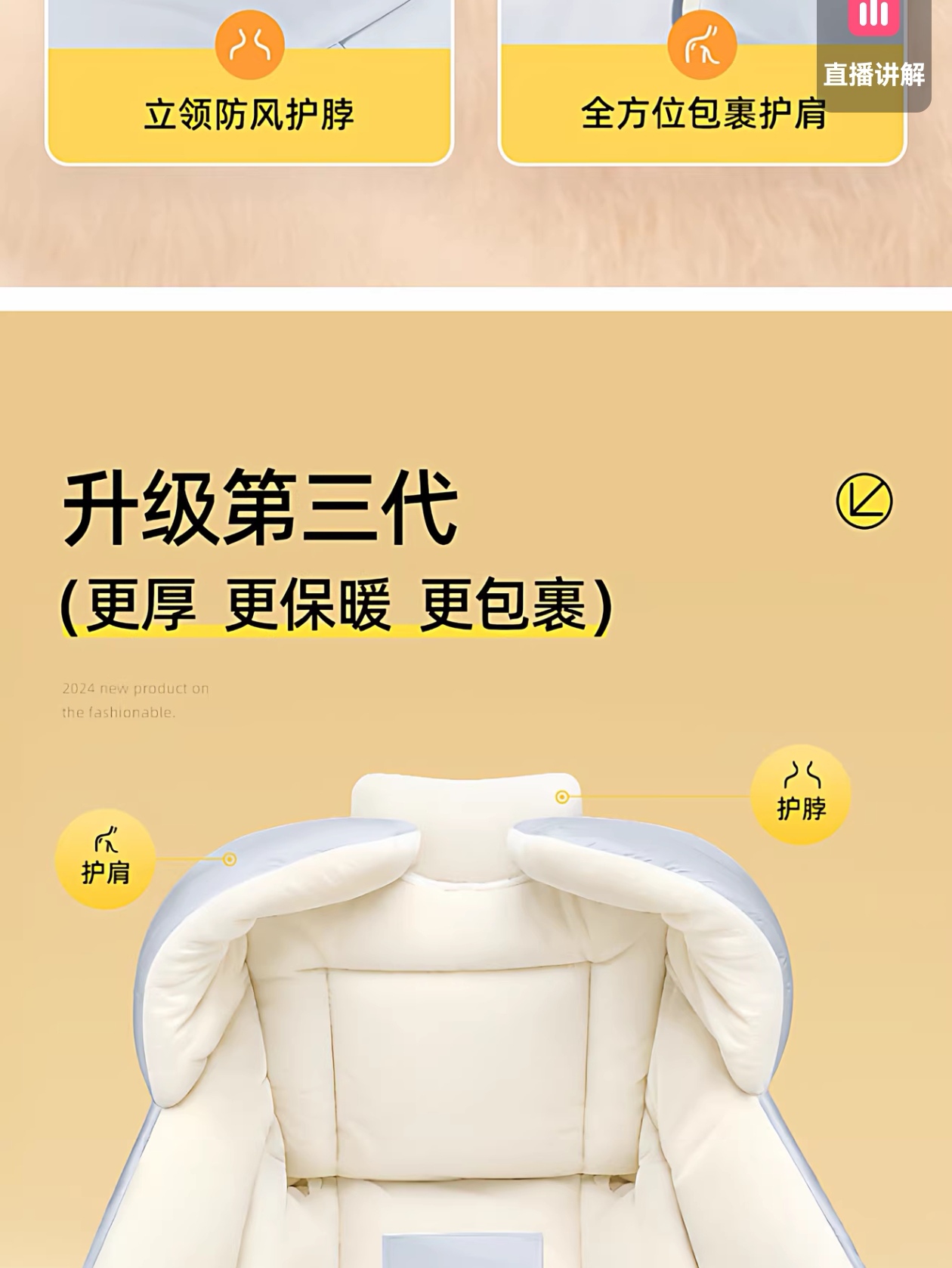 在电商平台,挡风被更是销售火爆。“全包裹出行,防寒更保暖”……在一家店铺,商家推出加厚升级款挡风被。从图片来看,产品不仅有加厚围脖,还有加大加厚包肩,再搭配全包大侧翼,主打无死角包裹。