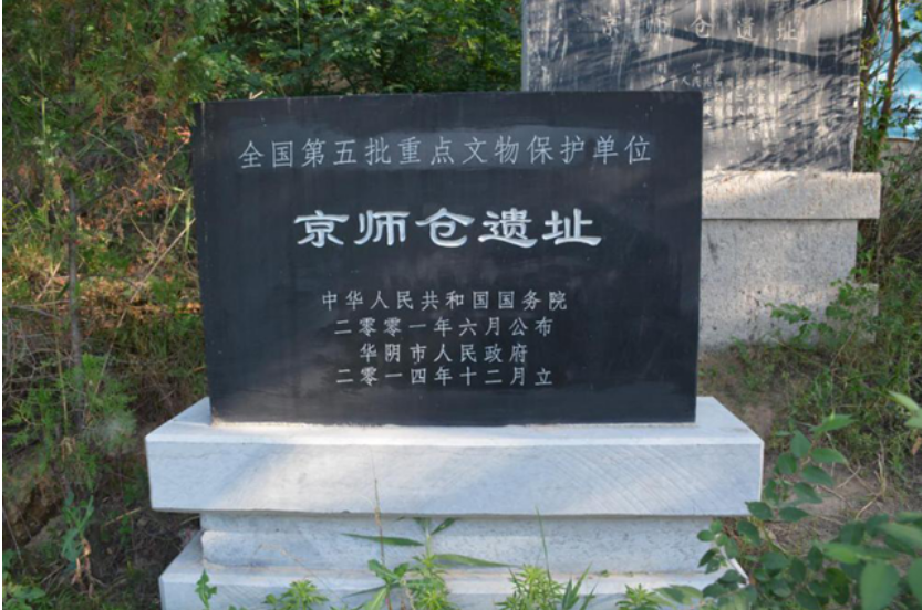 位于华阴市的西汉京师仓遗址,即《汉书·王莽传》中所载的京师仓,又名华仓、京师庾仓,修建于汉武帝时期,是为长安贮存、转运粮食的国家大型粮仓,是国内已发现的规模最大的古粮仓遗址。现为全国重点文物保护单位。
