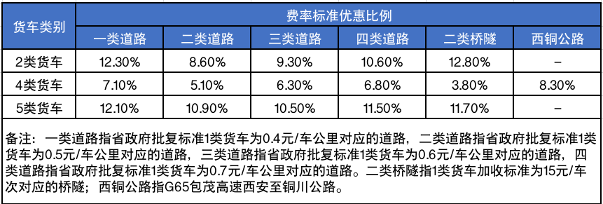 (一)全省高速公路载货类车辆费率标准在核定标准基础上优惠10%。