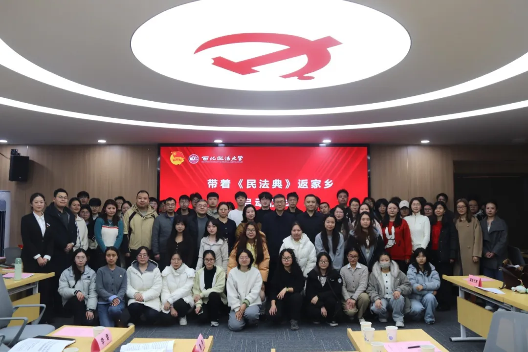 以法治为翼,赴家乡之约;以青春之力,筑基层之基。在《民法典》颁布五周年的重要节点,为深入学习贯彻习近平法治思想,积极响应司法部、教育部、共青团中央“法援志愿行”活动号召,紧密对接2026年全国大学生“返家乡”社会实践部署,1月15日下午,我校在长安校区“一站式”学生成长发展中心隆重举行2026年“带着《民法典》返家乡”社会实践暨“法援志愿行”专项活动启动仪式。校党委副书记郭武军出席活动,校团委、民商法学院相关负责人作为单位代表参加活动,陕西省大学生法治宣讲团各分团指导教师、校团委全体干部及省大学生法治宣讲团、各校级生组织、法律服务中心学生代表共同参会,启动仪式由校团委副书记王洋主持。