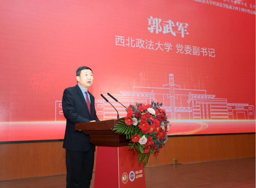 郭武军在讲话中高度肯定了经济法学院四十年来与国家法治建设同频共振、与市场经济发展同向而行的奋斗历程,从学科体系构建、人才培养质量、科研特色形成、国际交流拓展四个维度回顾了学院取得的瞩目成就,强调学院作为全国经济法学教育研究重镇,为国家培育了两万余名法治骨干与行业精英,发出了响亮的“西法大声音”。他勉励学院坚守立德树人根本、聚焦学科前沿高地、强化社会服务担当、传承优良办学传统,将“老延大精神”与法治精神深度融合,在高质量发展道路上勇毅前行。