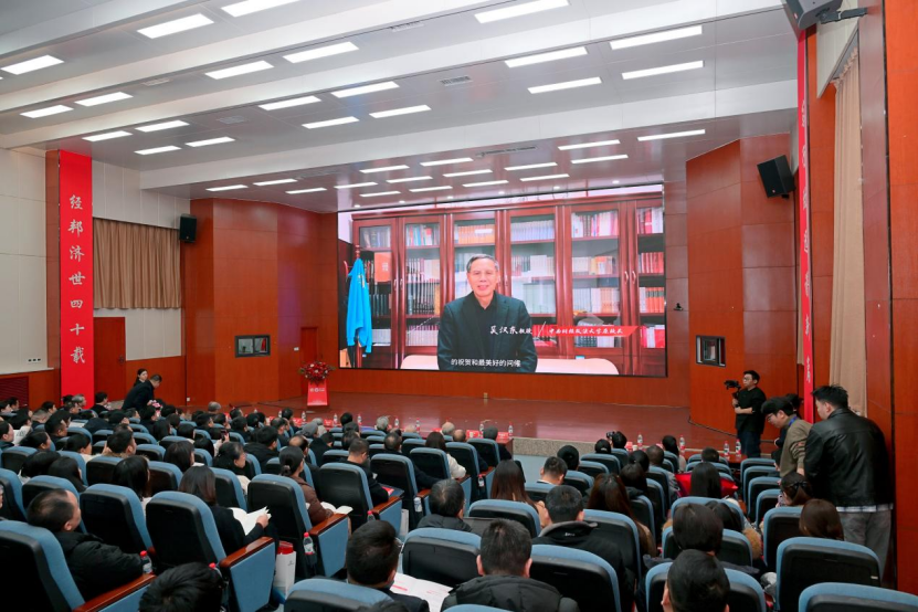 2026年1月31日,西北政法大学经济法学院成立四十周年暨高质量发展研讨会在雁塔校区隆重举行。校党委书记赵万东寄语学院发展,校长范九利参加校友座谈,校党委副书记郭武军、副校长孙昊亮、赵全宇出席活动,兄弟院校代表、海内外校友、校内职能部门负责人与学院师生齐聚一堂,共忆四十载办学初心,共话高质量发展蓝图。