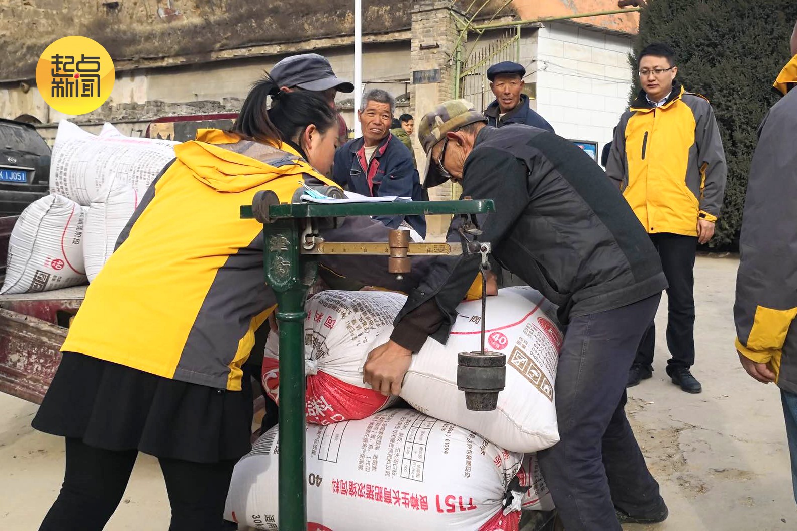 图为米脂县青创联盟电商公司到印斗镇对岔村收购谷子