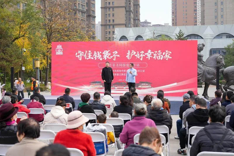 11月13日上午,西安曲江新区唐城墙遗址九区灯谜广场上人头攒动,冬日的阳光与现场热烈的气氛交相辉映。一场以“守住钱袋子·护好幸福家——防范非法网络借贷”为主题的现场宣传活动在此成功举行,为市民带来了一堂生动而实用的金融安全“公开课”。