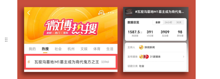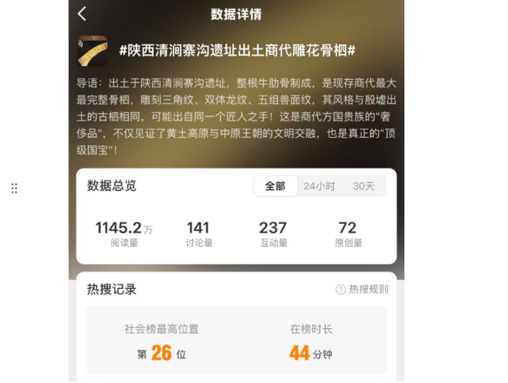 陕西卫视大屏、微博、视频号同步直播,全方位覆盖,用实打实的热度,印证考古魅力!