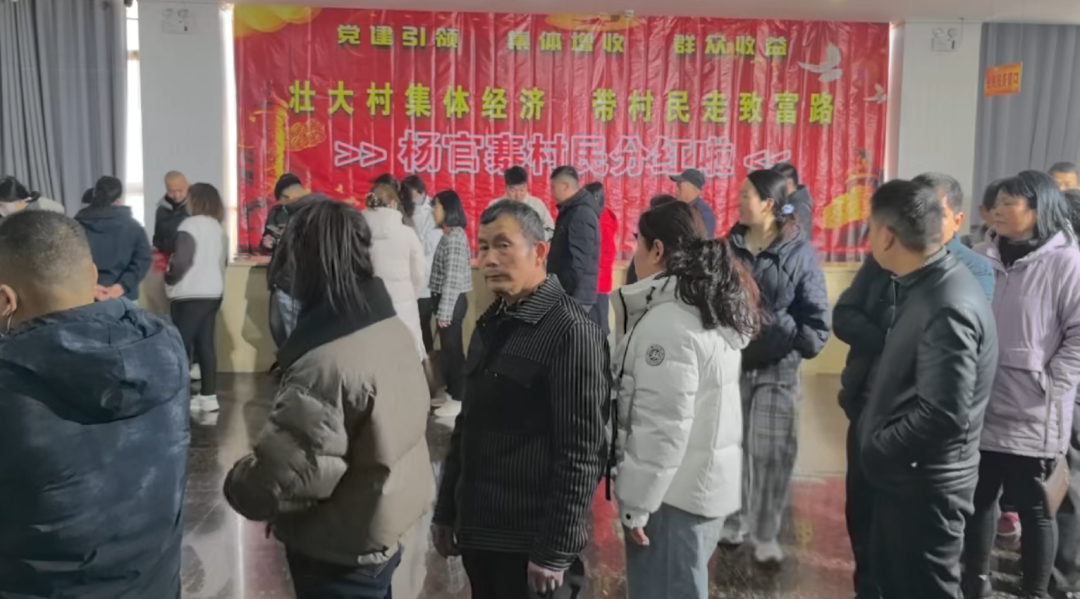2月11日,西安市高陵区姬家街道杨官寨村2025年度村民分红发放仪式在村委会二楼温情举行。