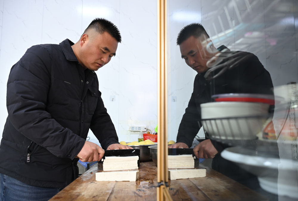 2月6日,庞富强在家中准备当天的午饭。 新华社记者 李一博 摄
