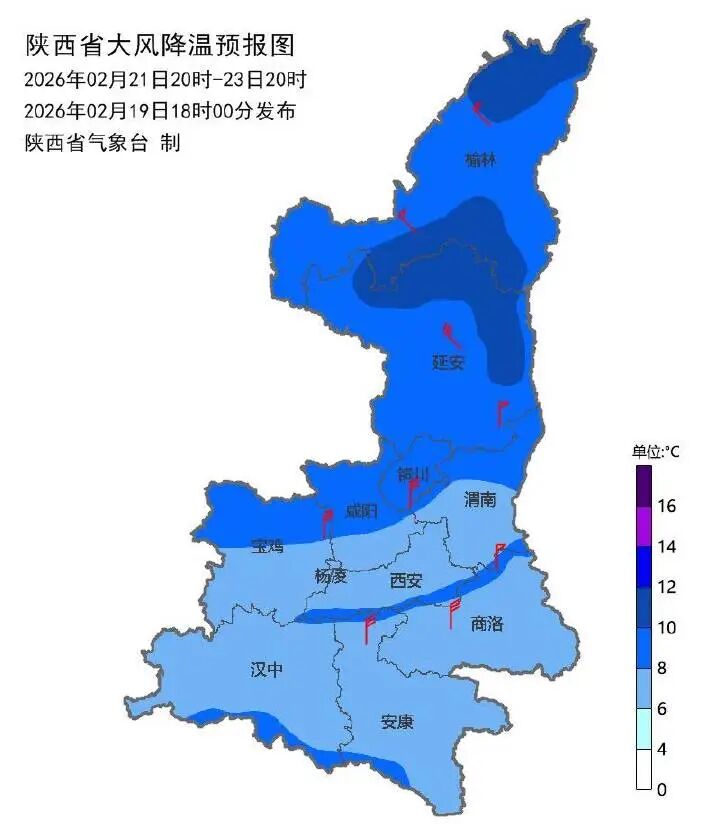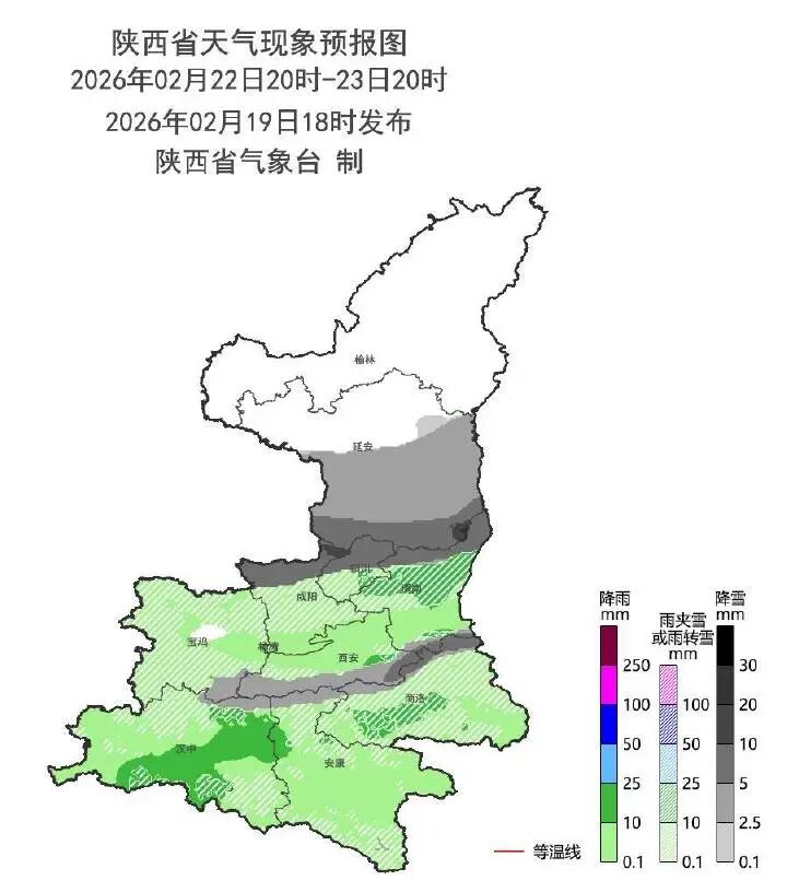 2月22日(初六):陕北北部晴天,陕北南部,关中晴天转多云,陕南多云。延安南部局地、关中北部局地有小雨或雨夹雪(0~1mm)。关中南部、陕南有5级(8.0~10.7m/s)左右偏北风、阵风6~7级(10.8~17.1m/s)。日平均气温陕北、关中大部下降6~8℃、陕北局地可达10℃。陕北、关中有扬沙或浮尘天气。