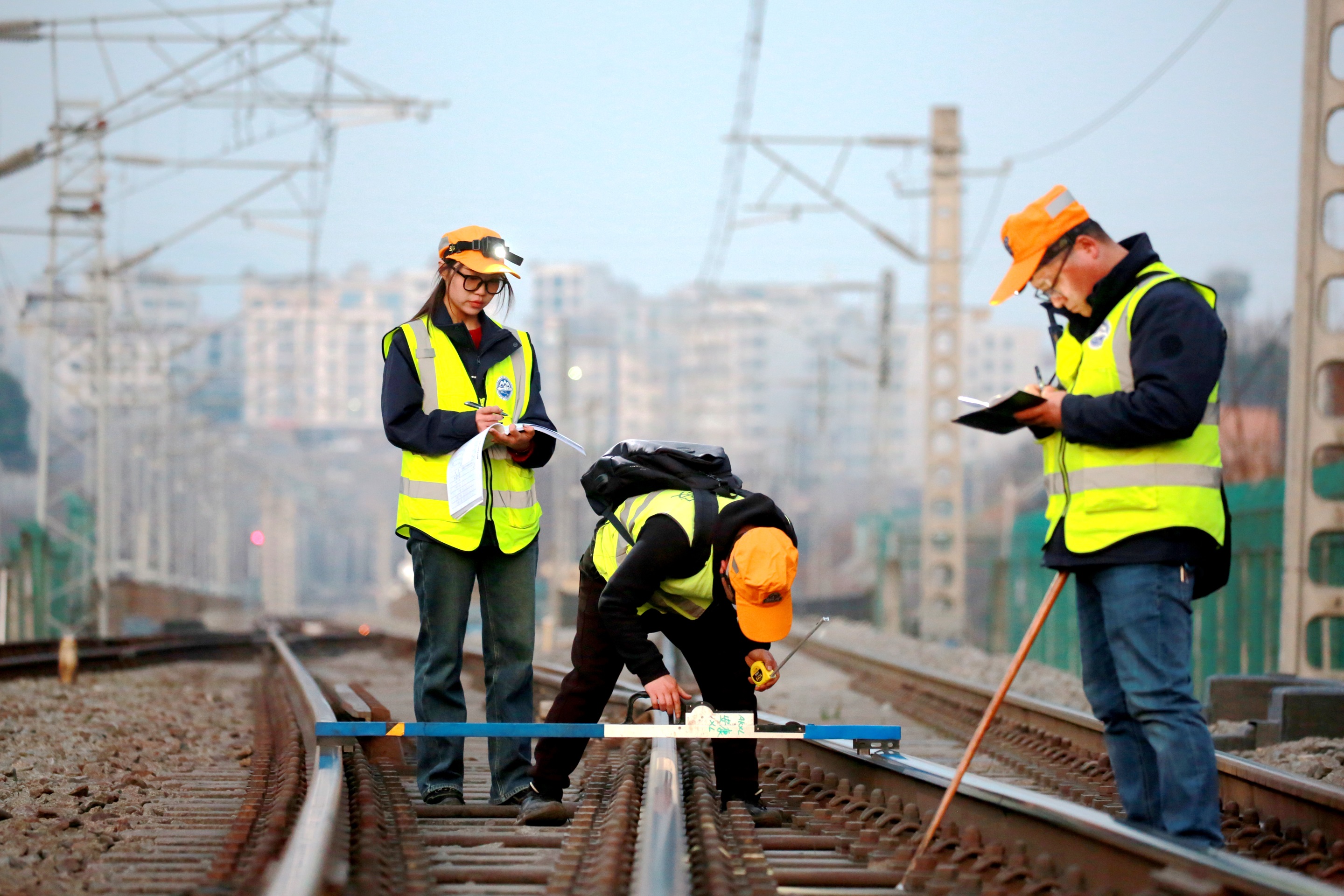 这个身高一米七、笑起来眉眼弯弯的25岁姑娘,穿上工装,一下子就切换到严谨的“工务模式”。起初,工友们对这位看似娇气的大学生持观望态度,直到见她寒冬深夜跪在轨枕边复核数据、为排查疑点徒步数公里、对规章条款如数家珍,才收起了疑虑。