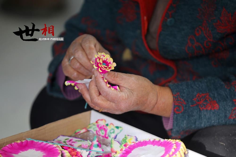 “现在年龄大了,容易忘东忘西,我把手工花灯的制作方法都记录在纸上,为的就是让这门手艺得以传承。”王蒲芳一边说着,手上的活又开始了——剪花、染色、搓纸绳、绑骨架……那双手干瘦,骨节粗大,却灵巧得很,“过完年,也要接着教,接着做。等哪天做不动了,还有这双手教出来的娃娃做,年味可不能断了……”