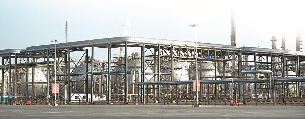 在延长石油榆林炼油厂生产区,机器轰鸣,常压装置巍然矗立,输油管道纵横交错。