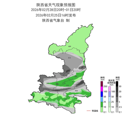 陕西省气象台副首席预报员姚静表示,受低槽东移影响,2月28日至3月1日陕北南部、关中北部及西部有雨夹雪转中到大雪,其中铜川北部局地、延安南部局地有暴雪;关中平原地区、陕南有小到中雨,秦岭山区有中到大雪,局地有暴雪,巴山局地有小到中雪,需关注雨雪天气造成的道路湿滑、积雪结冰、低能见度对春运返程的不利影响。