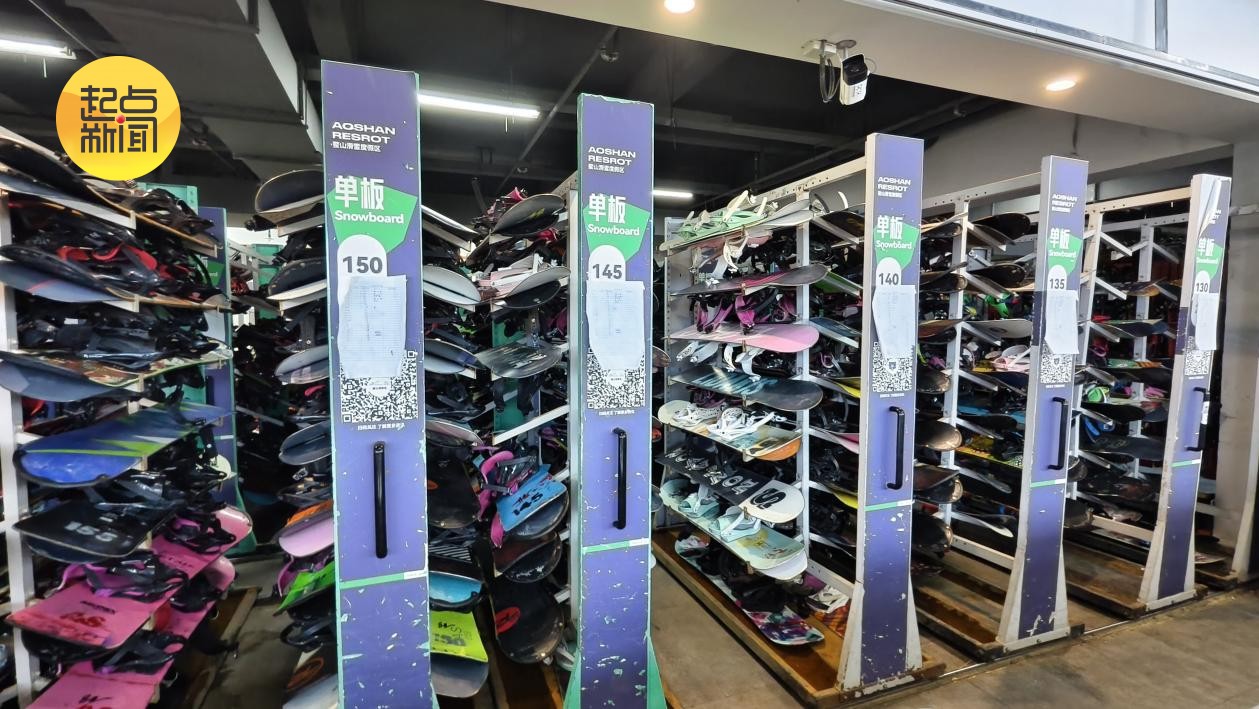 整齐摆放的雪板