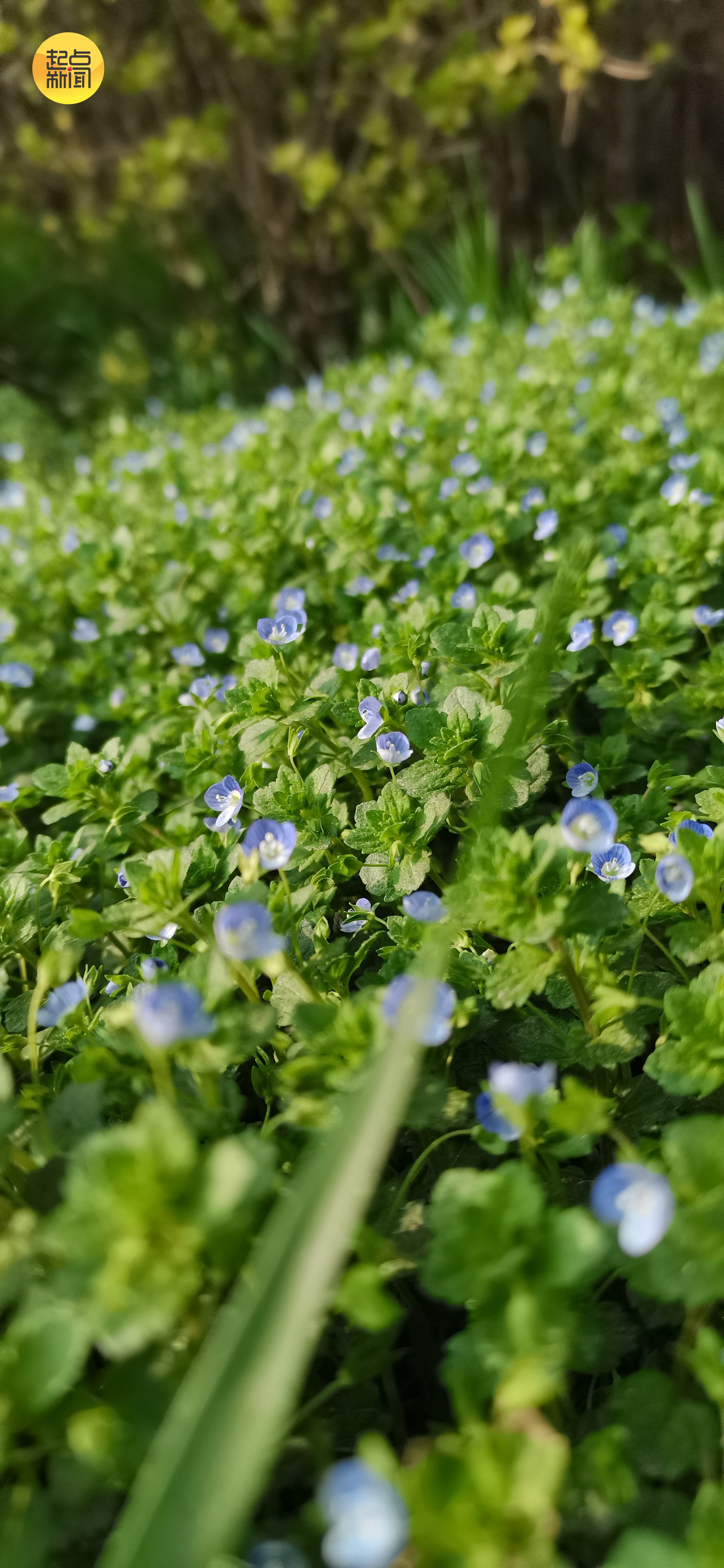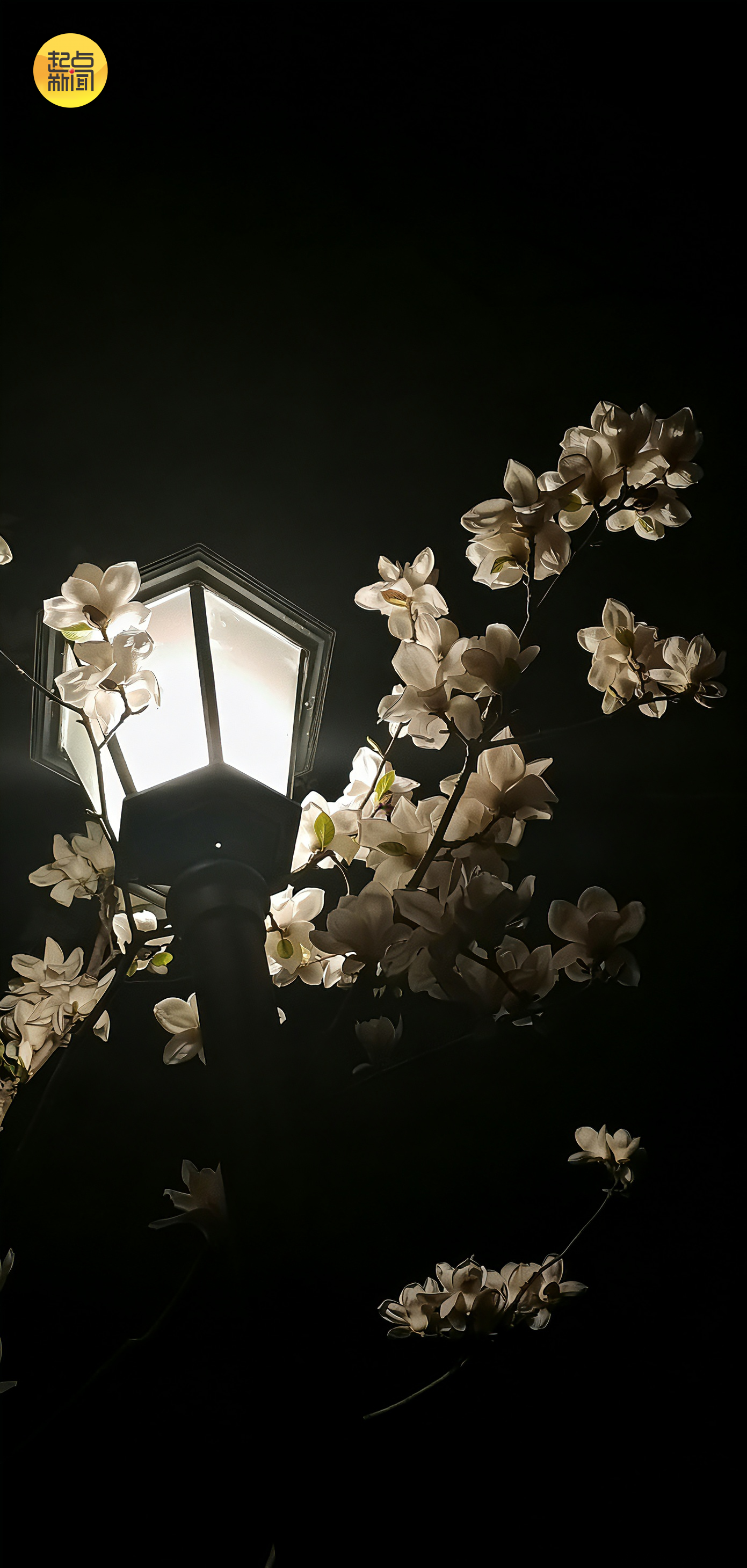 玉兰在夜色里与路灯私语,桃花和海棠在晴空下热烈盛放,婆婆纳铺成蓝色的星子。