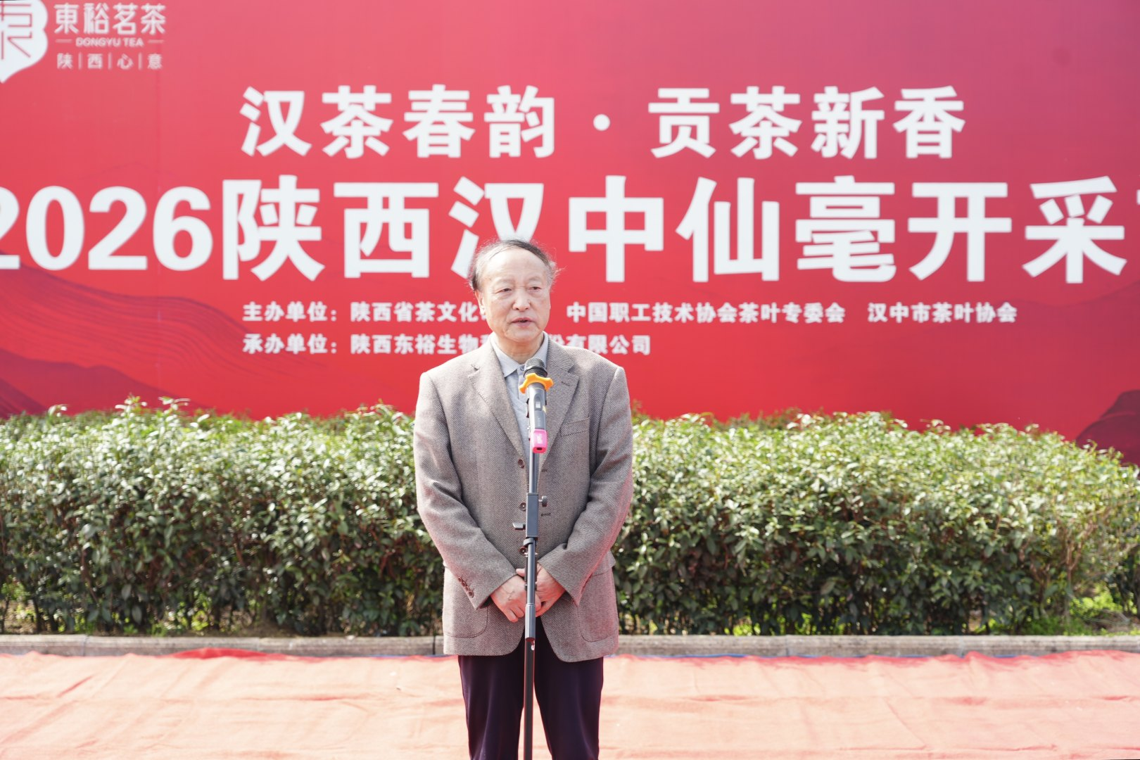 陕西省茶文化研究会名誉会长、汉中市茶业协会名誉会长、汉中仙毫品牌创始人郑宗林宣布2026陕西东裕汉中仙毫正式开采,标志着本年度汉中仙毫春茶全面上市,春日茶山迎来丰收时刻。