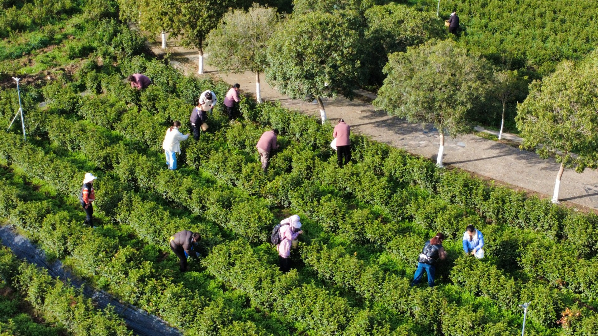 茶农在茶园里采茶