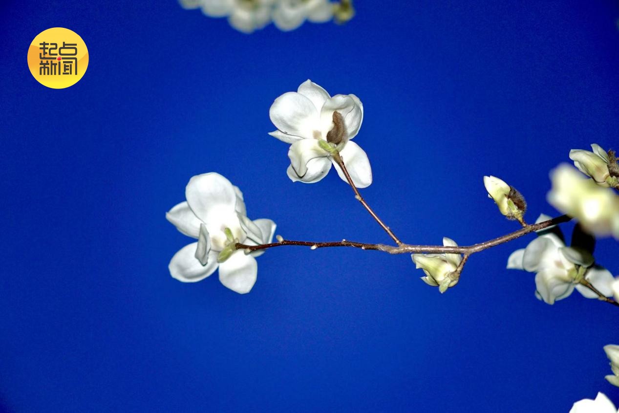 紫叶李与玉兰交错横斜,似是“暗香浮动月黄昏”的写意,又藏着“乱花渐欲迷人眼”的鲜活。