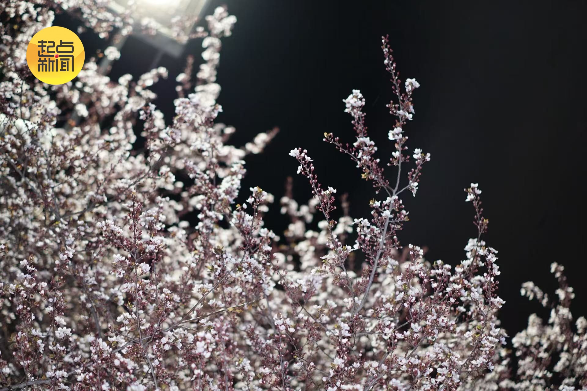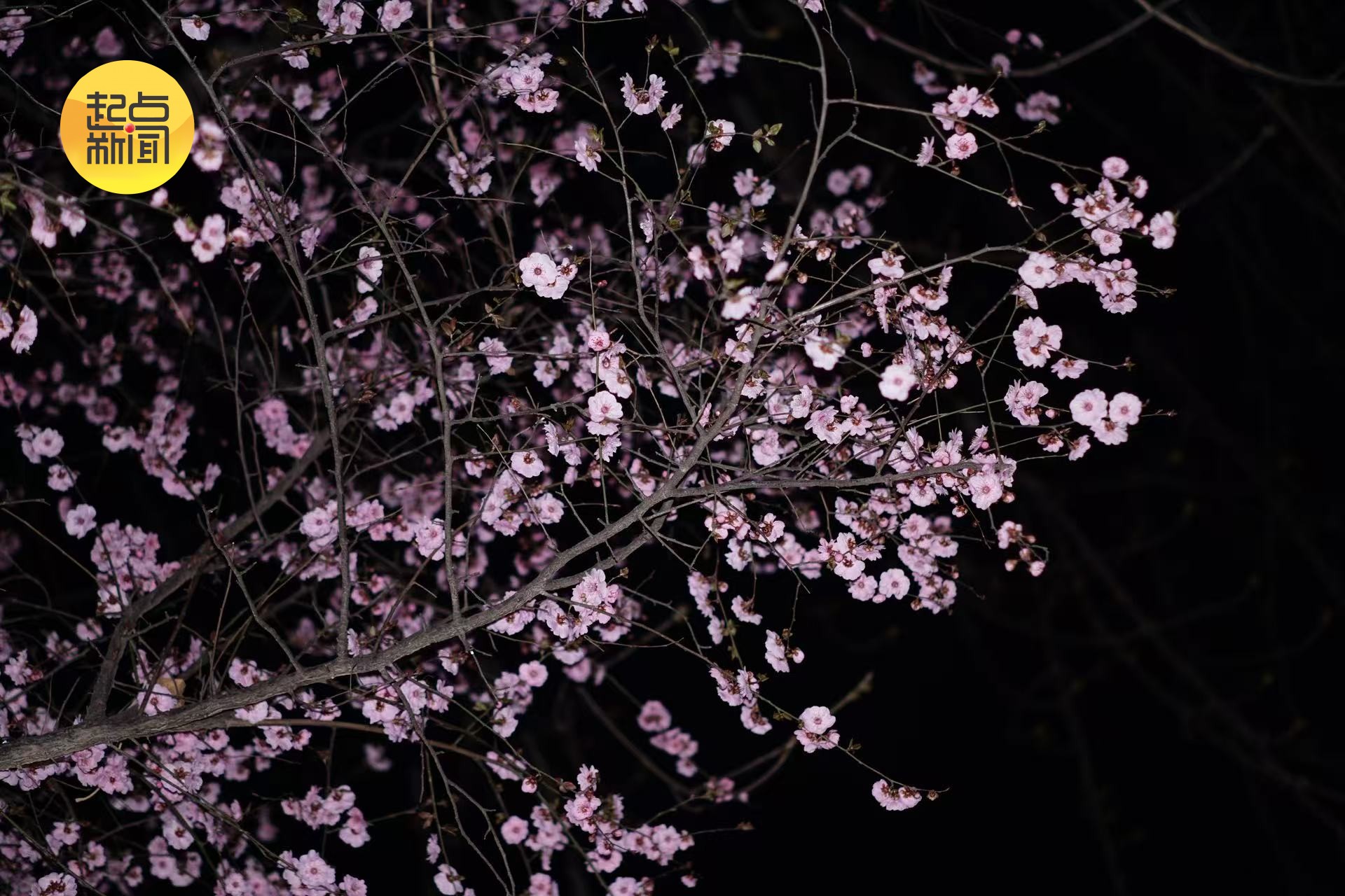 晚风轻拂,碎白与柔粉在暗夜里簌簌轻颤,将春日的温柔与诗意,都揉进这一方静谧的夜色里。