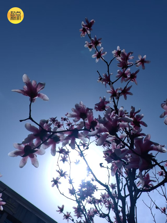 紫玉兰的花瓣舒展成春日的信笺,在澄澈的蓝天上写满温柔。风过枝桠,便抖落一地细碎的春光,把三月的心事,都藏进这抹温柔里。