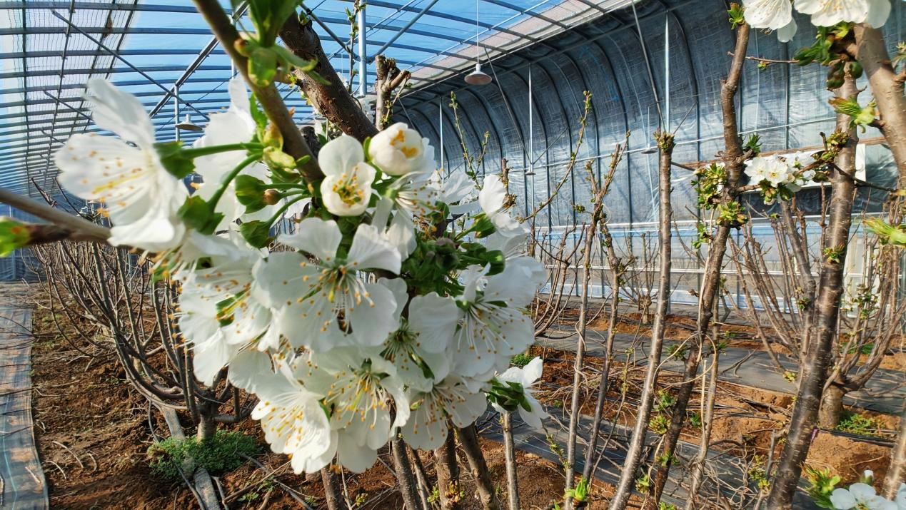 历时一年五个月,从谋划申报到落地投产,营头镇新河村半坡式智能温棚暖棚大樱桃种植项目拔地而起,一棵棵樱桃树苗逐步长成,在这个春天迎来花开绚烂。