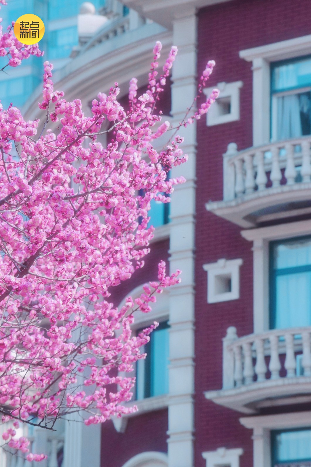 花绽枝头,楼立其间。