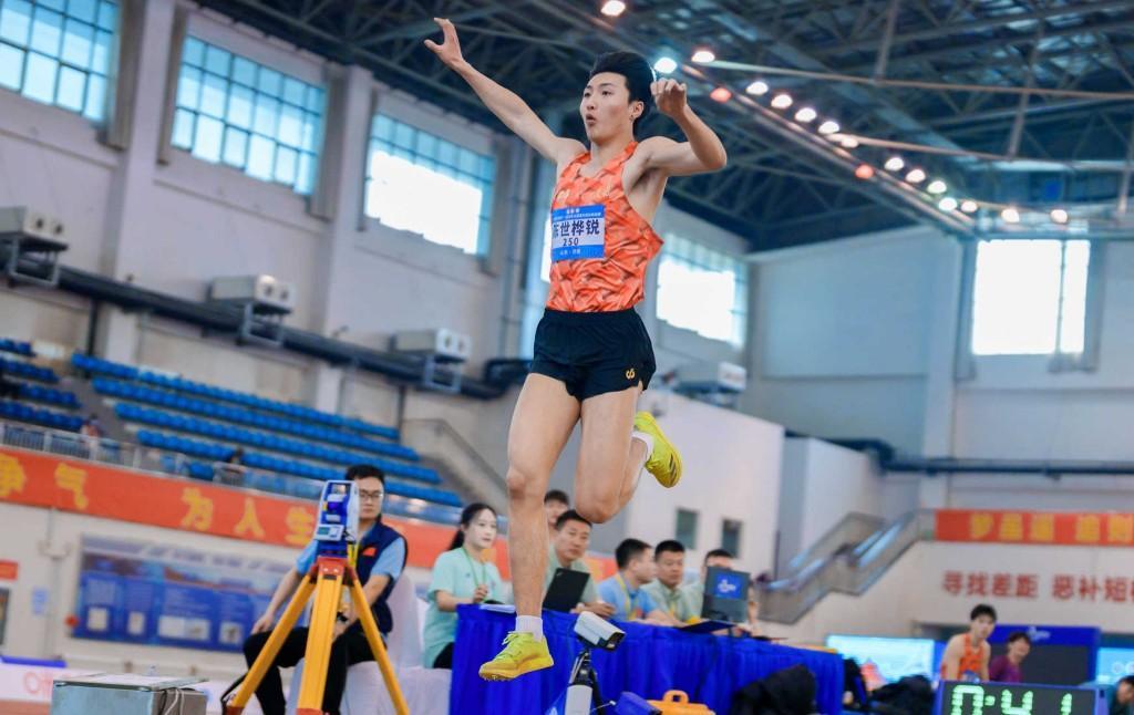 陈世桦锐在男子三级跳远比赛中