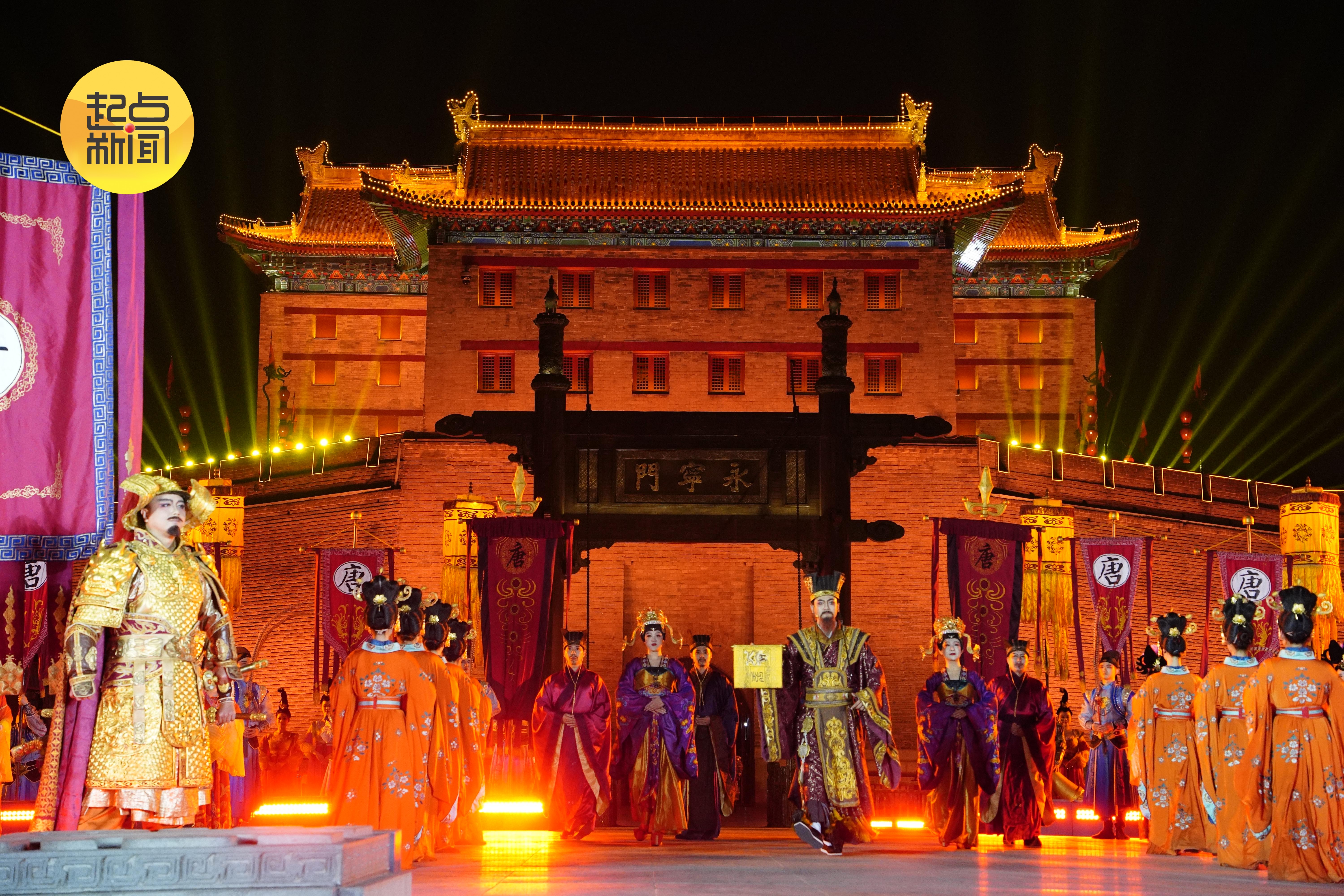 4月3日晚,《梦长安—大唐迎宾盛礼》在西安城墙永宁门试演,今日(4月4日)晚正式开启新一年度的演出。