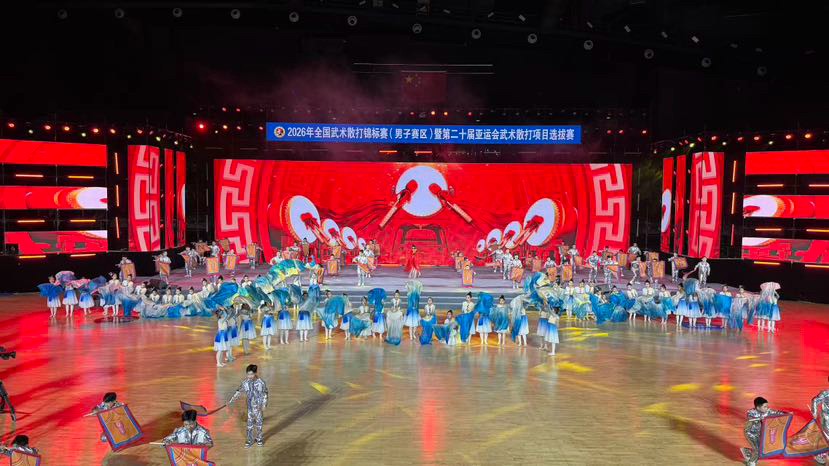 开幕式现场座无虚席、气氛热烈。运动员、裁判员方阵精神抖擞、依次入场,尽显昂扬向上的体育风貌。开幕式文艺展演精彩纷呈,智能机器人动感起舞、科技感十足,传统武术表演刚柔并济、气势如虹,充分展现了中华武术的独特魅力与全民健身的蓬勃活力。演员马景涛、樊少皇,导演徐小明等文体界嘉宾倾情助阵,将现场氛围一次次推向高潮,欢呼声、喝彩声此起彼伏。