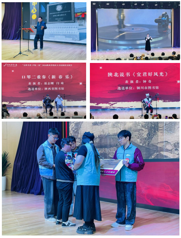 分享会上,来自全省各地的残障读者与志愿者带来形式多样、精彩纷呈的节目展演:商洛市王小民以快板《仓颉造字在洛南》唱响汉字源头佳话;汉中市志愿者刘志霞深情朗诵史铁生《秋天的怀念》,传递生命力量;西安美术学院志愿者带领现场读者触摸盲文版《清明上河图》,让千年画卷在指尖铺展;盲人艺术家聂志刚与闫琦带来口琴二重奏《新春乐》,用音符奏响生命暖意;铜川市钟奇以陕北说书《宜君好风光》展现黄土高原风情。